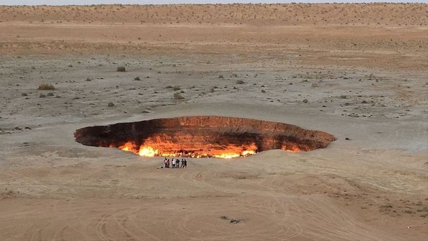 Ubicada en el desierto de Karakum, la Puerta del Infierno es un cráter de gas que ha estado ardiendo desde 1971. Originalmente un campo de gas natural, los científicos encendieron el fuego para evitar la propagación de gases tóxicos, y nunca se apagó.