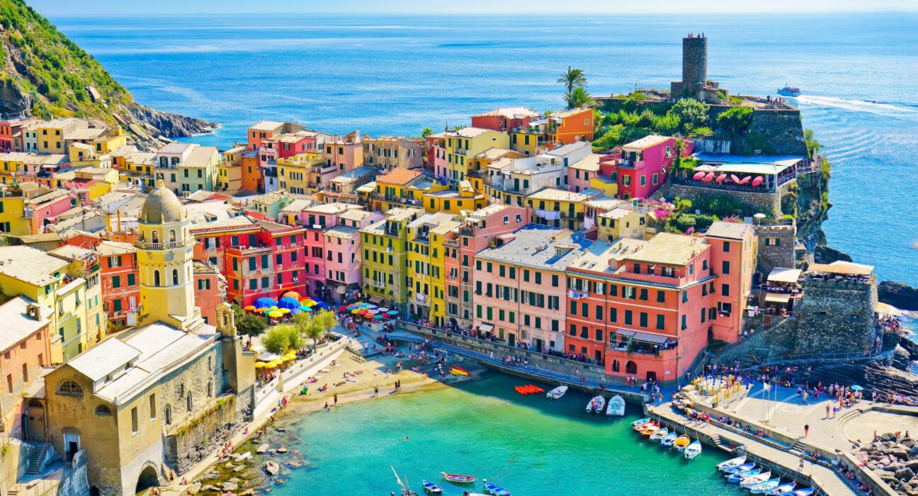 Este conjunto de cinco pueblos costeros, situados en la región de Liguria, es un tesoro italiano. Las casas de colores brillantes, que parecen aferrarse a los acantilados sobre el Mediterráneo, crean un paisaje único.