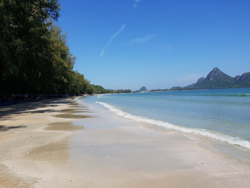 Ubicada en Prachuap Khiri Khan, Ao Manao es una playa amplia y tranquila, abrazada por montañas verdes y una base aérea que limita su acceso, manteniéndola increíblemente limpia y segura.