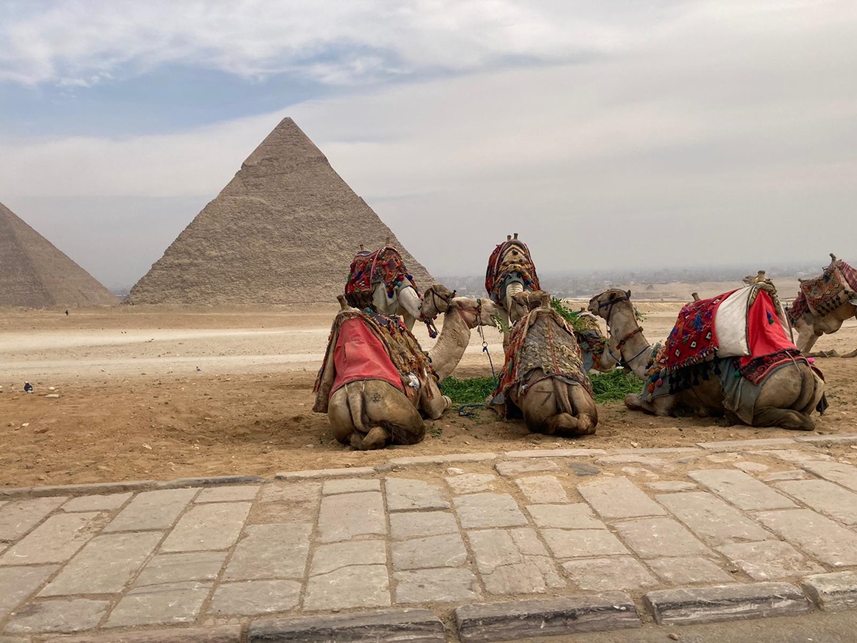 El primer día comenzó temprano, con un cielo despejado y el aire cargado de emoción. Mientras nos acercábamos a la meseta de Giza, las imponentes siluetas de las pirámides se levantaban en el horizonte.